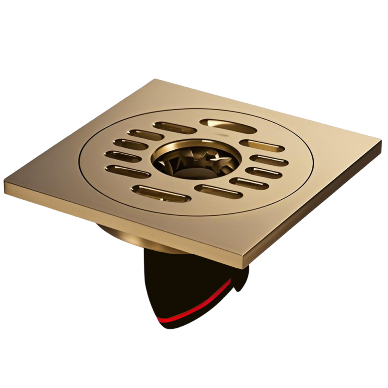 FL-1101X Solid Brass Circular Hole Square Floor Drain 100×100 mm with Removable Strainer